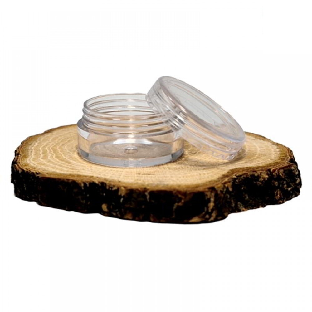 Recipientul cu capac din plastic transparent, avand un volum util de 5ml, este un recipient foarte potrivit pentru o gama mare de produse cosmetice și de îngrijire ca : diverse produse cu CBD, parfumuri solide, esantion gratuite de produs, diverse farduri si pudre, depozitare, etc !